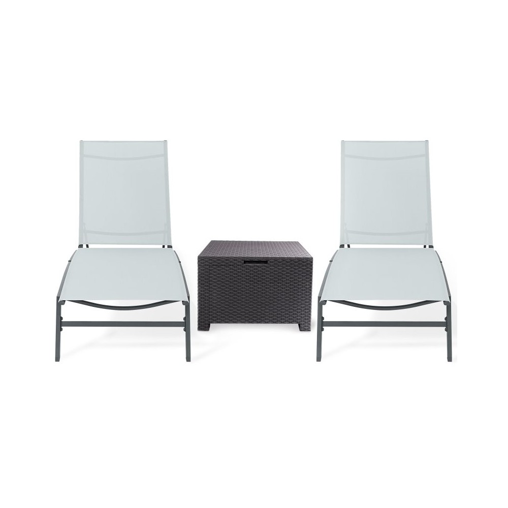 Päevitustoolide komplekt 2 tk sobiva külglaua padjaga