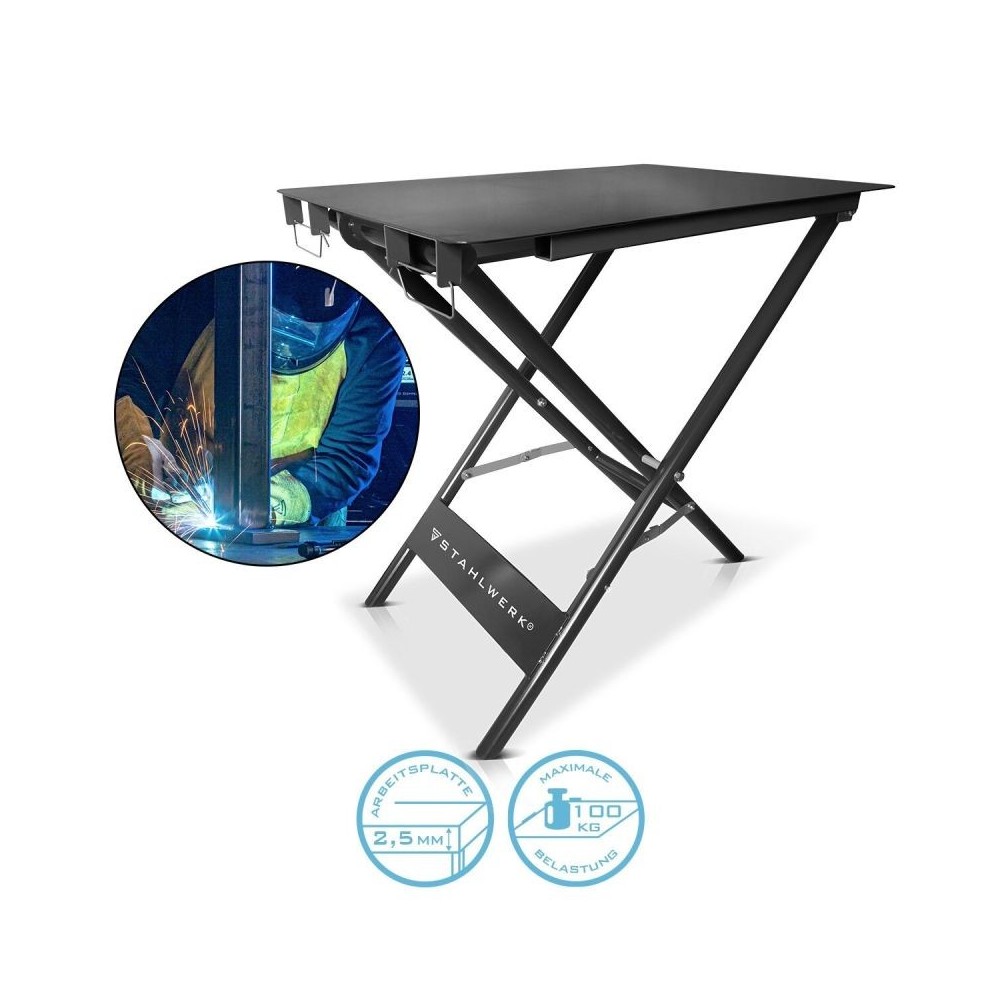 - Kokkupandav keevituslaud tööpinnaga 890 x 595 mm sobib ideaalselt laia valiku keevitustööde jaoks. - Tugeva montaažilaua kandevõime on 100 kg, see on eriti vastupidav ja avaldab muljet suurepärase stabiilsusega. - 2,5 mm paksune tööpind ja pulbervärvitud jalad muudavad töölaua eriti vastupidavaks löökidele ja kriimustustele. - Mobiilset töölauda saab mõne lihtsa sammuga kokku voltida, seda on lihtne transportida ja ruumi kokkuhoiuks hoiustada. - Tänu kvaliteetsele viimistlusele sobib keevituslaud kõikideks keevitusprotsessideks ja eriti hästi kasutamiseks tööstuses, kaubanduses ja isetegemises.
