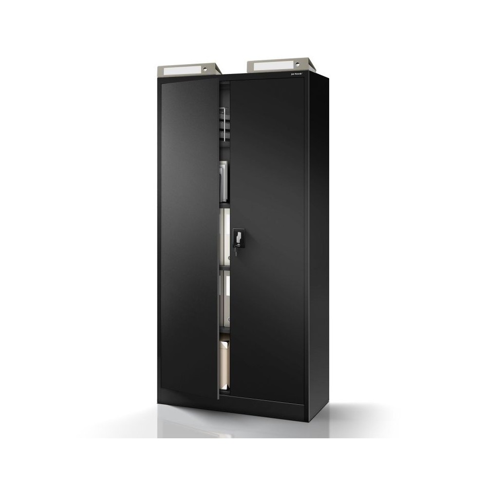 Kolmepunktilukuga topeltuksed pakuvad hõlpsat juurdepääsu sisule ja kaitsevad salvestatud dokumente või esemeid volitamata juurdepääsu eest. 0,6 mm paksune pulbervärvitud teras on mehaaniliste kahjustuste suhtes vastupidav, muutes JAN H kontorikapi tooteks, mis pakub rahulolu paljudeks aastateks.