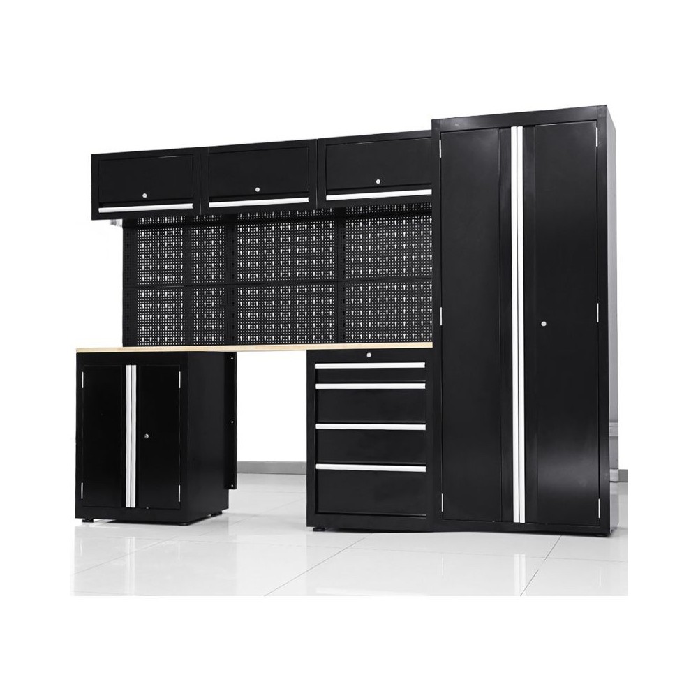 Erinevad moodulid pakuvad laia valikut konstruktsioonivõimalusi. Komplekt on valmistatud vastupidavast, külmvaltsitud, pulbervärvitud mustast terasest, mis tagab vastupidavuse ja töökindluse. Eelmonteeritud ja koos kinnitusrööbaste ja kruvidega on kiire ja lihtne paigaldamine selle kvaliteetse töökojakomplekti veel üks eelis.