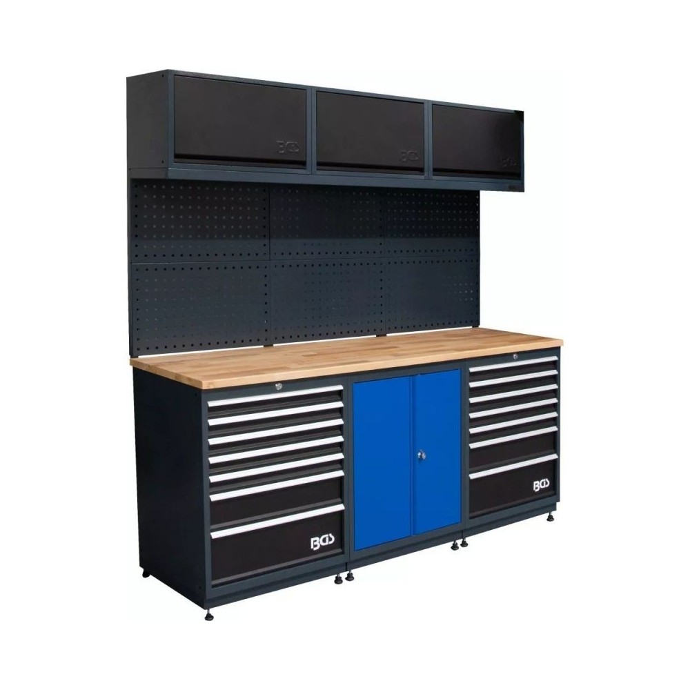 - 1 täispuidust tööpind, 1950 x 535 x 30 mm, kandevõime kuni 250 kg/m²
