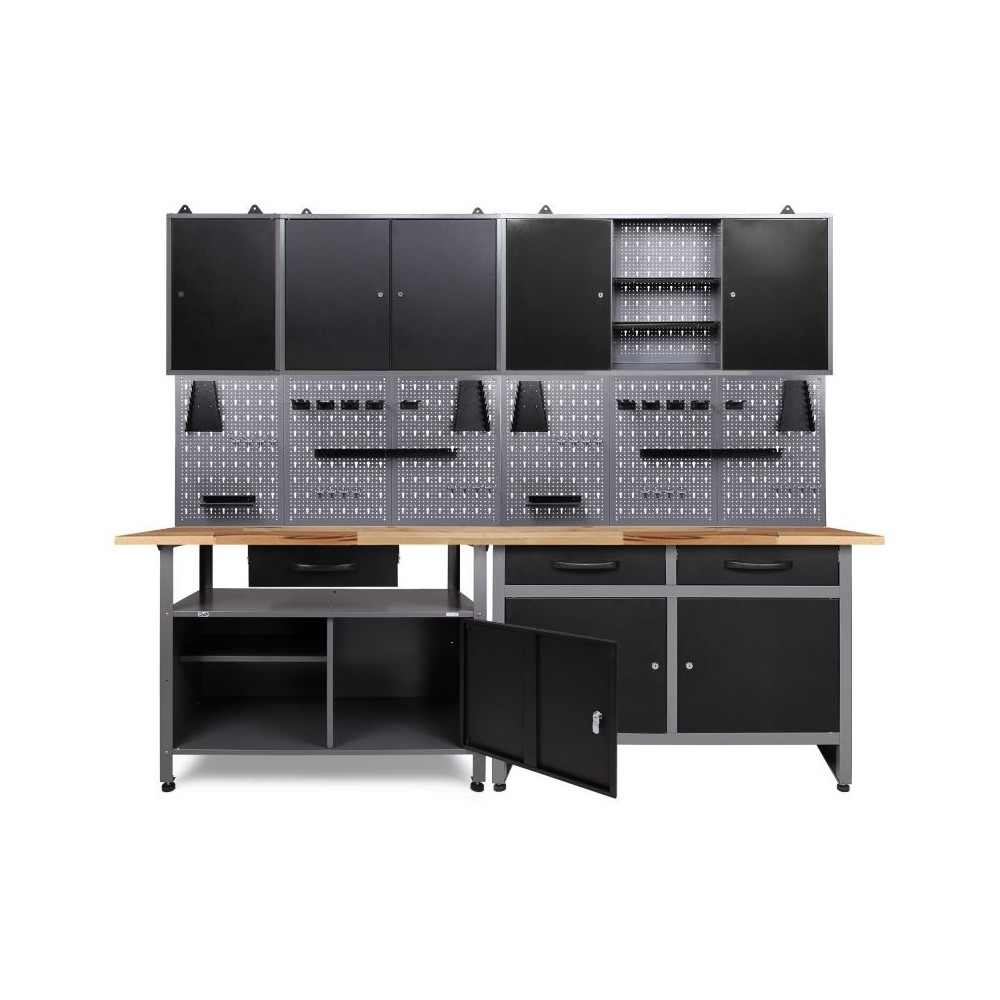 Töökoja varustus 240 cm - töökõrgus 85 cm - koosneb 2 x töölauast (Werner/Klaus), 3 x töökojakapist (42 cm / 80 cm / 120 cm), 6 x perforeeritud seinast, 2 x perforeeritud Seinakonksude komplekt