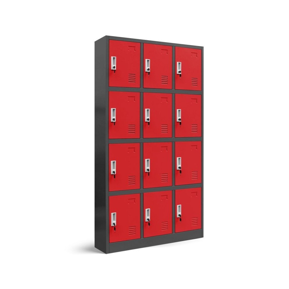 Antratsiit- ja punane 90 cm MARCIN sektsioonidega hoiukapp 12 sahtliga JAN NOWAK kollektsioonist - riiete, dokumentide, töötubade, ettevõtete jaoks