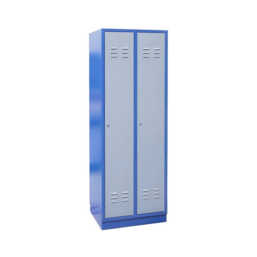 Täielikult kokku pandud kapp kahe lukustatava kapiga riiete ja väärisesemete hoidmiseks riietusruumides ja töökodades. Tugev, pulbervärvitud täisterasest konstruktsioon ventilatsiooniavadega optimaalse õhuringluse tagamiseks ja märgistusklappidega selgeks identifitseerimiseks. Ülemine riiul, riidepuutoru ja kaks riidekonksu tagavad kapis vajaliku organiseerituse. Komplekti kuuluvad silinderlukud koos kahe võtmega iga väärisesemete turvaliseks hoiustamiseks.