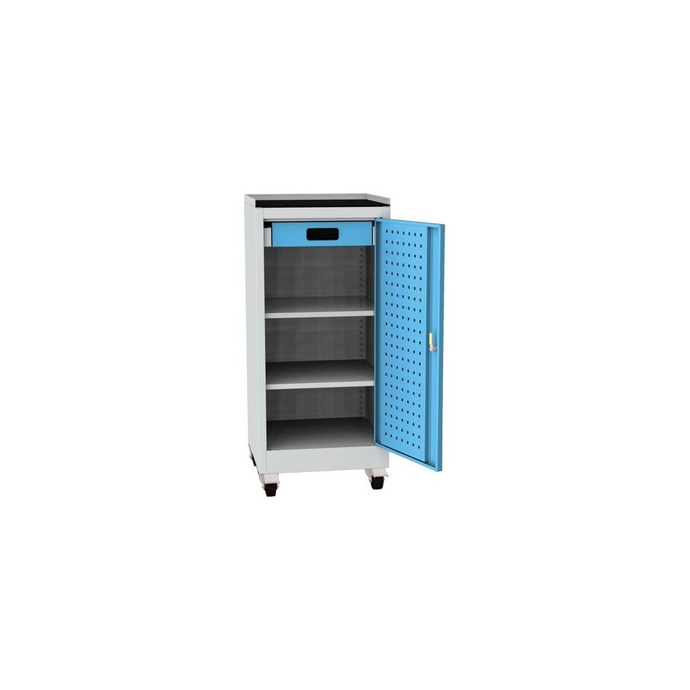Töökoja tööriistakapp ratastel ja raamitud kummist töötasapinnaga