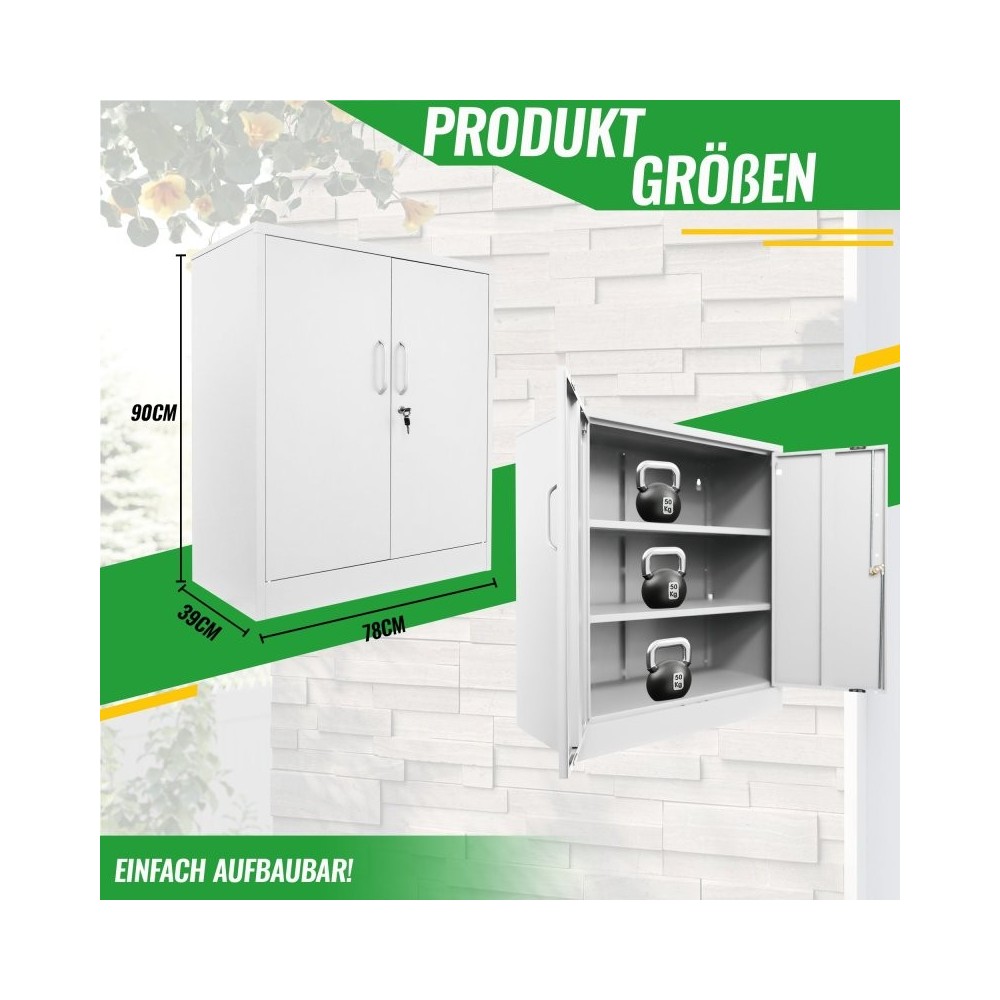 Selle metallkapi saab tänu juhistele kiiresti kokku panna ning see on praktiline ja äärmiselt vastupidav partner teie kontorisse või töökotta. Selle teraskapi mõõtmed on umbes 78 x 39 x 170 (K) cm ja sellel on neli metallriiulit, mida saab kiiresti ja lihtsalt külgseintele kinnitada. Riiulid on kõrguses reguleeritavad ja igaüks mahutab kuni 50 kg. See tähendab, et saate riiuleid üksteisest eemale kinnitada, nii et faile saab hoida mitmes reas üksteise kohal. See vabastab ruumi teie arhiividele. Kapi mõlemat ust on lihtne lukustada (komplektis on 2 võtit). See dokumendikapp on ideaalne täiendus teie kontorisse. See on siiski piisavalt kerge, et seda vajadusel kahekesi liigutada või kanda. Metallkapp sobib suurepäraselt ka töökotta või aeda. Metallriiulid on väga stabiilsed. Siin saate mugavalt ja ohutult hoiustada raskeid ja suuri tööriistu. Kui paigaldate kapi lattu või tööstusettevõttesse, leiavad (pool)valmis detailid või masinad siit tugeva ajutise hoiuruumi. See muudab selle tööriistakapi väga mitmekülgseks. Metall on värvitud halliks ja mustust hülgavaks. Tänu siledale pinnale on kappi ka lihtne pühkida ja puhastada. Kas olete sellest praktilisest universaalsest kapist vaimustuses? Siis tellige see kohe meilt veebist. Seejärel saadame teile metallkapi kohe. Sobiv kapp on saadaval ka meie veebipoes. Kõik mõõtmed on ligikaudsed ja viitavad eseme maksimaalsetele välismõõtmetele. Saatmiskaal on samuti ligikaudne. Täpsema teabe saamiseks võtke ühendust meie tugimeeskonnaga.