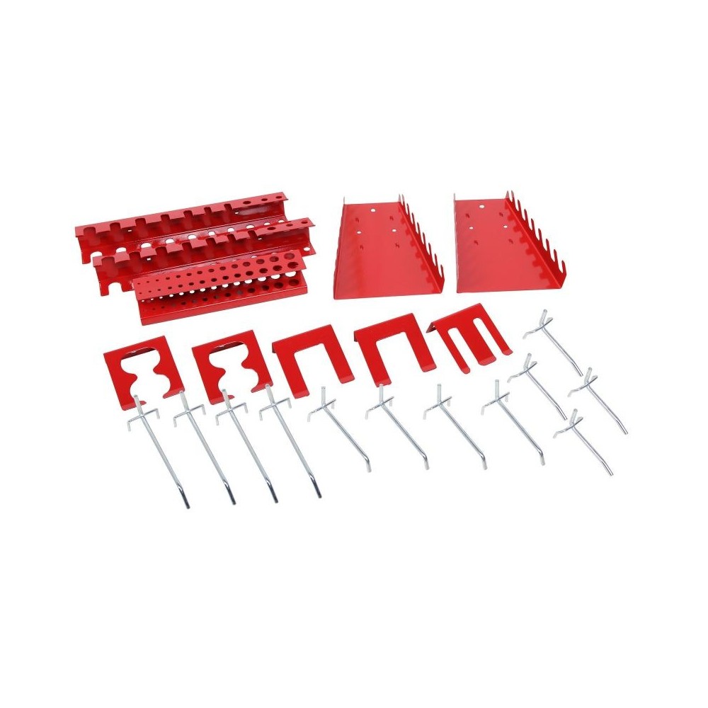 See perforeeritud seinakonksude sari koosneb 22 osast ja sobib meie perforeeritud seintele. Saate oma töökojas asju hõlpsalt korras hoida. Perforeeritud sein tagab ka suurepärase selguse tööriistade jaoks. Tänu perforeeritud seinakonksudele on kõik tööriistad kiiresti kättesaadavad. Perforeeritud seinad ja konksud sobivad ideaalselt tööpinkidele ja kõigile isetegijate entusiastidele, kellel on palju tööriistu. Lisaks puurihoidikule on valikus mitmesuguseid individuaalseid konksusid ja universaalseid tööriistahoidikuid. See võimaldab teil mugavalt hoiustada erinevaid tööriistu ja tarvikuid.