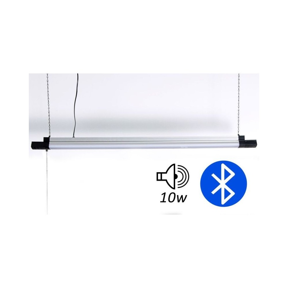 LED-ripatslamp Bluetoothi ja kõlariga 10 vatti 5000 luumenit 4000 kelvinit töökoja lamp hobikeldrisse koos pistikute ja 118 cm laiuse ketiga alumiiniumraamiga