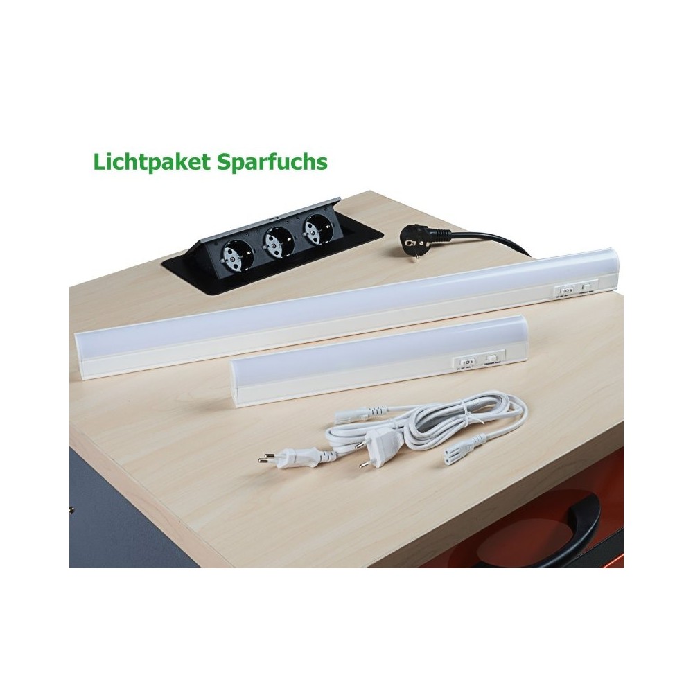 Majanduslikuks otstarbeks mõeldud valgustuskomplekt, mis koosneb 30 cm ja 60 cm LED-valgusribadest ning väljatõmmatavast Schuko pistikuga pikendusribast.