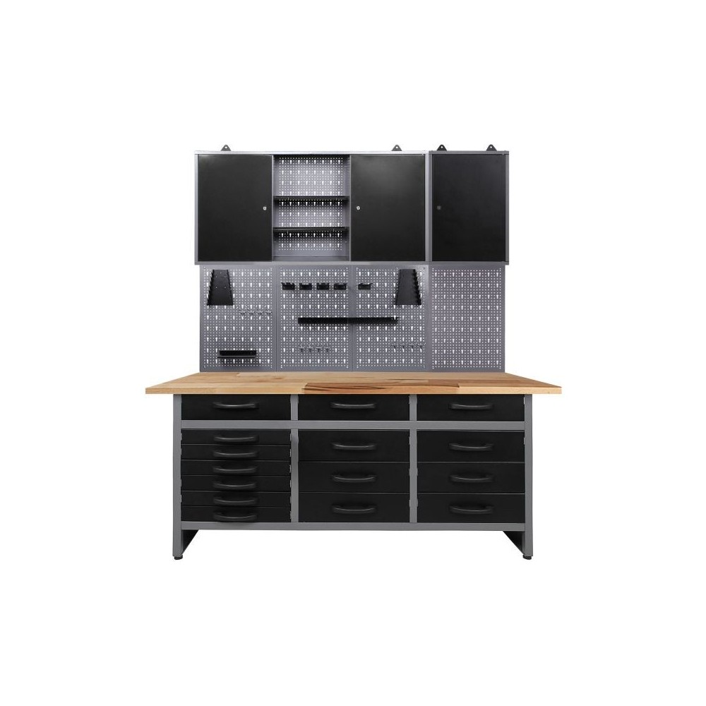 Töökojaseade 160 cm - töökõrgus 85 cm - koosneb 1 x töölauast (Konny), 2 x töökojakapist (42 cm / 120 cm), 4 x auguga seinast, 1 x auguga konksude komplektist
