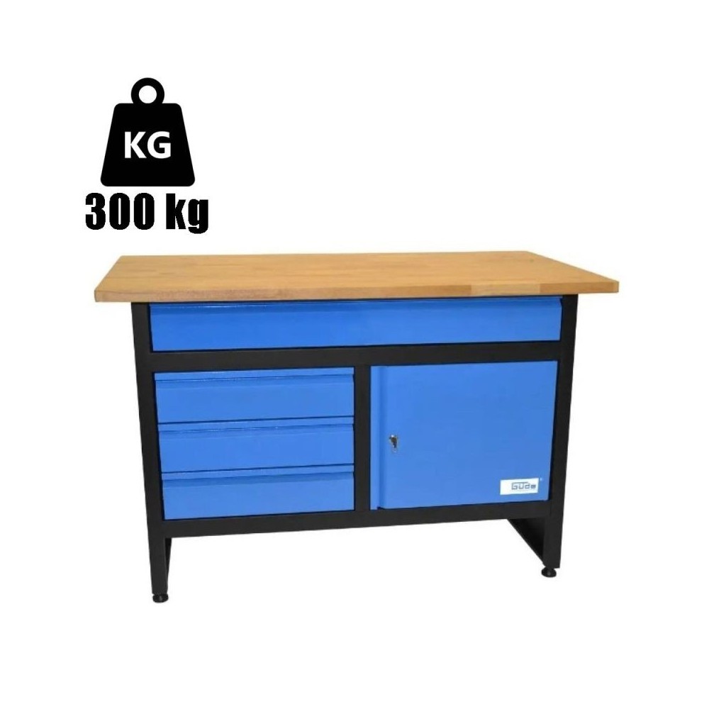 Kirjeldus See tööpink kuulub Güde Eco Line sarja – tööpinkide seeriasse, mis avaldab muljet oma stabiilse konstruktsiooni, lihtsa kokkupaneku ja erinevate disainidega. Saadaval on lai valik nii suuruste kui ka uste ja sahtlitega varustuse osas – nii leiab igaüks endale sobiva mudeli. Individuaalne joondamine pole Eco Line'i puhul samuti probleem, kuna kõrgusega reguleeritavad jalad pakuvad lihtsat ja täpset reguleerimisvõimalust. Eriti vastupidav tööpind on valmistatud kummipuust ja on seetõttu 50% kõvem kui näiteks tammepuitplaat. Samuti ei taha te ilma jääda täielikult väljatõmmatavatest sahtlitest, mida saab igaüks koormata kuni 30 kg raskusega ja mis liiguvad kuullaagritega juhtsiinidel. Töölaua maksimaalne kandevõime on 300 kg,