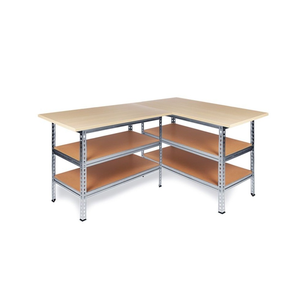 Kaks vahepealset riiulit mitte ainult ei taga tööpingi stabiilsust, vaid pakuvad ka palju hoiuruumi, mida saab tõhusalt kasutada. Lisaks saab riiuleid eraldi kasutada ja paigaldada eelnevalt puuritud aukudesse vastavalt soovile. Tänu avatud disainile saab hoiustatud konteinereid kohe ja ühe korraga eemaldada. Töölaud tarnitakse lahtivõetuna. Igasugustel isetegijatel pole selle töölaua kokkupanekuga probleeme. Kokkupanek peaks võtma umbes 15-20 minutit ja toimima samm-sammult vastavalt juhistele. Kõik vajalikud tarvikud ja kokkupanekujuhised on loomulikult pakendis kaasas, samuti tööriistad. Meie programm sisaldab ka sellele töölauale sobivaid tööriistakappe ja perforeeritud seinu. Töölaua mõõtmed on 120 (L) x 92 (K) x 60 (S) cm ja kaal on umbes 23 kg.