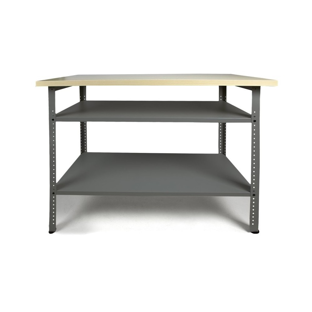 Tööpingil on reguleeritavad jalad, et ebatasasusi hõlpsalt kompenseerida ja tööpingi stabiilsust tagada. Kaks vahelist riiulit (umbes 100 x 47,5 cm) mitte ainult ei taga tööpingi stabiilsust, vaid pakuvad ka palju hoiuruumi, mida saab tõhusalt kasutada. Lisaks saab riiuleid eraldi sisestada ja vastavalt soovile eelnevalt puuritud aukudesse paigaldada. Avatud disain võimaldab hoiustatud tööriistu koheselt ja lihtsalt eemaldada. Tööpink tarnitakse lahtivõetuna. Isetegijal pole selle tööpingi kokkupanekuga raskusi. Kokkupanek peaks võtma umbes 30 minutit ja juhiseid tuleks samm-sammult järgida.