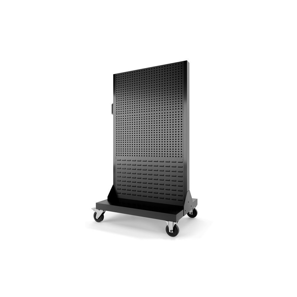 MARIUSZ mobiilse töökojaseina abil on vajalikud tööriistad iga töö ajal käepärast. Raami paigutasime ratastel kindlale platvormile, mis mahutab kuni 6 perforeeritud paneeli. Korraldajate kinnitamine mõlemale küljele annab veelgi rohkem võimalusi tööriistade paigutamise korraldamiseks. MARIUSZ mudel on pühendatud professionaalsetele tööstus- ja vulkaniseerimistehastele ning tehastele, kuid tänu oma lihtsale liikuvusele sobib see hästi ka väikesesse töökotta või garaaži.