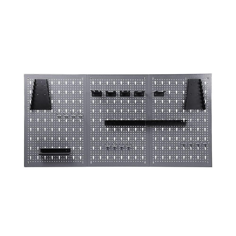 Perforeeritud sein mõõtmetega umbes 119,5 x 2,5 x 59 (K) on valmistatud metallist ja kaalub umbes 3 kg. See pakub palju ruumi näiteks meie 22-osalisele konksude sarjale. See koosneb kolmest osast (igaüks umbes 40 x 59 cm), mida saab ka eraldi seina külge kinnitada. See tähendab, et saate oma töökoja paindlikult vastavalt oma soovidele korraldada. Üksikuid perforeeritud seinu saab seina külge kruvidega kinnitada. Lisaks on igal perforeeritud seinaosal tagaküljel riputusaas. Lihtne hall värv on ajatu ja sobib kõikjale.