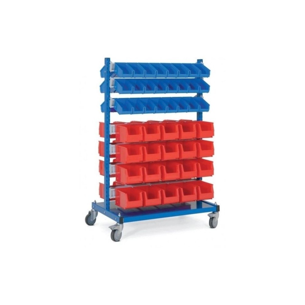 Konteinerite tugedega mobiilne riiul sobib ideaalselt detailide ladustamiseks, teisaldamiseks ja ettevalmistamiseks tootmisliinidele või varuosade ettevalmistamiseks hooldustöödeks. Riiul sobib ideaalselt ka tellimuste ettevalmistamiseks tootmisettevõtetes.