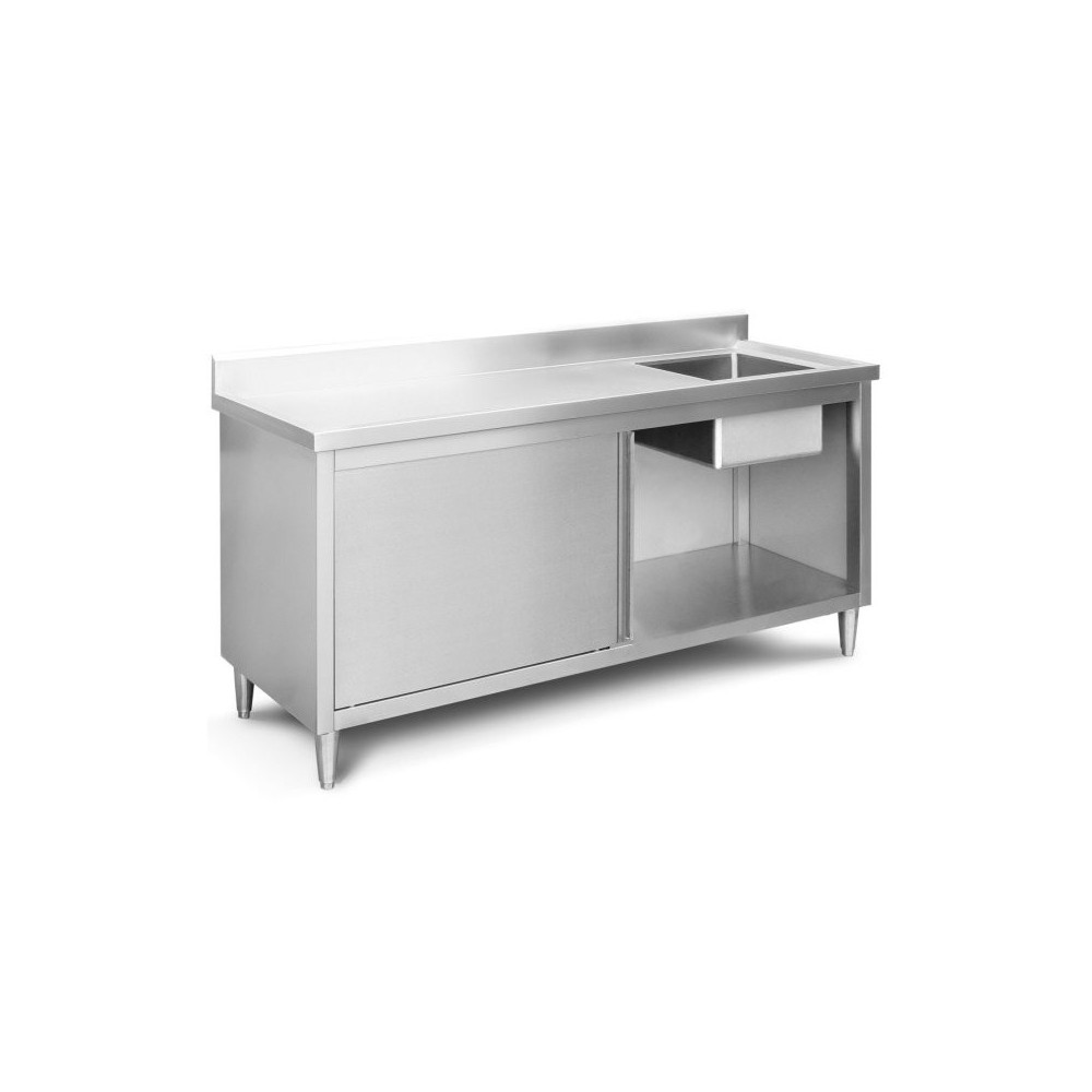 Töölaud valamuga 180 cm, roostevabast terasest, nõrutusava ja seinaäärega